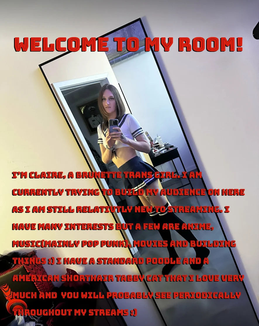 Hi I'm Claire! welcome to my room :) I'm here to have fun
