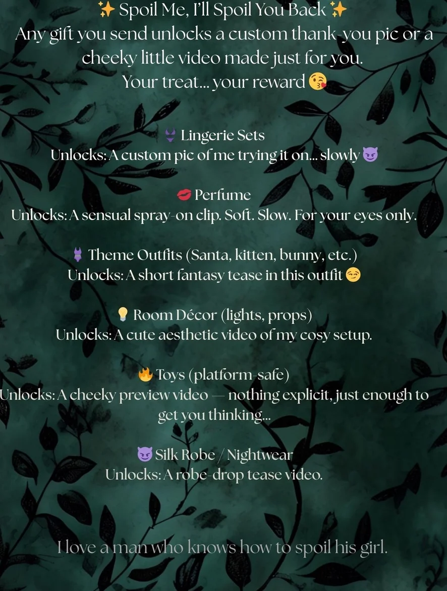 No mercy. No exceptions. Just desire with rules. 1. Manners matter. Approach me like you actually thought about it. A little softness, a little effort — that’s how you get my attention. 😏 2. Respect stays in the room. Not a big deal, just enough to keep things comfortable and attractive. I like when the vibe stays clean. 🥀 3. If you want more, use the menu. Extra attention, extra heat, extra anything — choose it. I notice when someone puts in the effort. 😉 4. Don’t make demands. We’re here to flirt, not bark orders. Keep it smooth and I’ll meet you there. 🔥 5. Confidence with a gentle touch always works. Say what you want, say it clearly, say it with intention… that’s the good kind of bold. 😘 6. Keep things safe, keep things decent, keep things hot. A little edge is attractive — just don’t ruin the vibe. 7. And if you’re in the mood to spoil me… My Throne is open for Christmas. I won’t say no to a little holiday temptation. 🎁🖤 https://throne.com/ms_lunar_lust