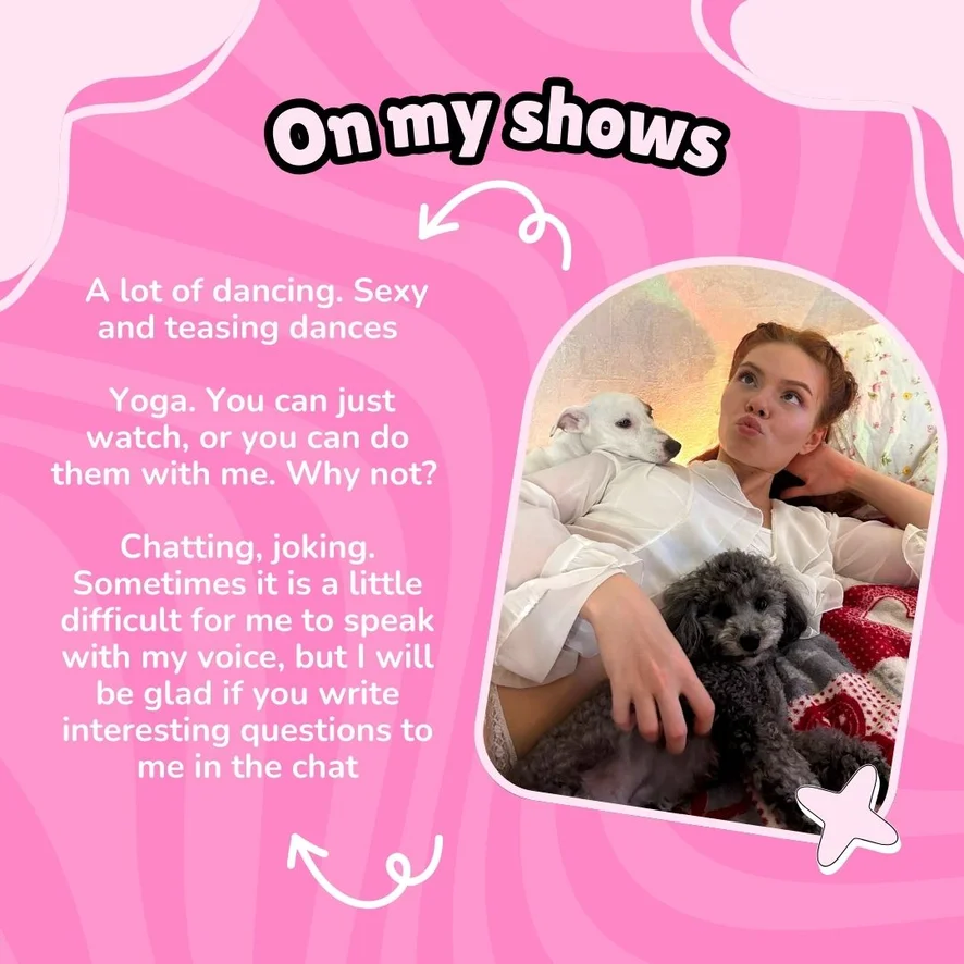 Ahegao, Menayang Badan, Yoga, Nilon, Penilaian Zakar, Pertunjukan Minyak, Tampar Punggung, Fetisy Kaki, Gaya Anjing, Tumit tinggi, Goyang Jongket, Toy in pussy 300tk extra, Melancap, Main jari, Kulum, Tarian Erotik, Lancap Menggunakan Tangan, Separuh Bogel, Tarian Bogel, Menunjukkan Lurah Faraj, Ride a pillow, Pinch nipples, Alat Permainan Seks, Main Peranan, Dildo atau Penggetar, Sembang Lucah, Orgasma, Gaya Berkuda, Bercium