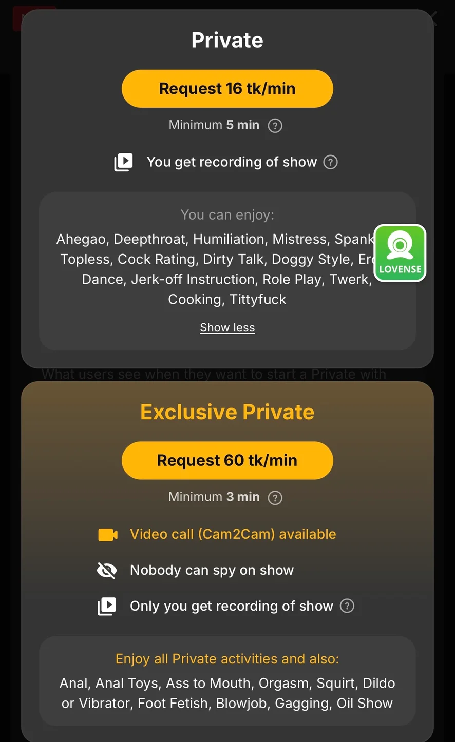 Here's an overview of what I do during private and C2C exclusive private sessions. If you'd like to request a specific activity during private with Spy, please note there will be additional costs. 😉