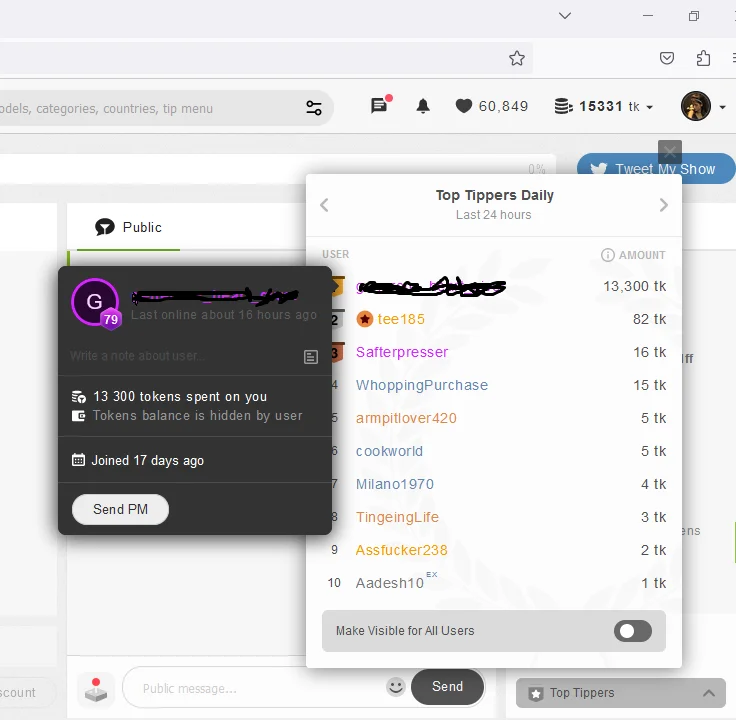 Salah seorang model dengan penarafan tertinggi untuk pertunjukan peribadi