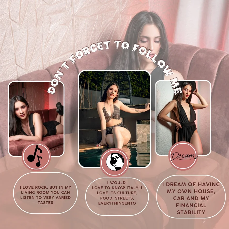 Hello My name is Mariana, I love meeting new people, talking about different cultures of people, without leaving aside the sensual and sexual part that we can have, I love interacting, so follow me so we can get to know each other better
